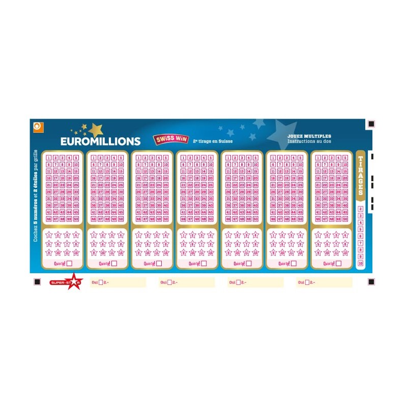 Euromillions (Loterie Romande) : Vous avez la possibilité de nous commander une ou plusieurs grilles pour les tirages du mardi et vendredi