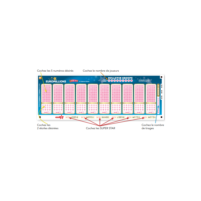 Euromillions (Loterie Romande) : Vous avez la possibilité de nous commander une ou plusieurs grilles pour les tirages du mardi et vendredi (bulletin groupe)
